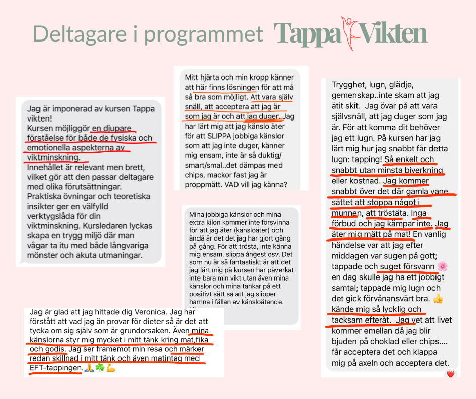 Från insikt till varaktig viktminskning med den beprövade tekniken EFT-tapping, stödjande community och gruppcoaching. 🚀